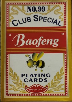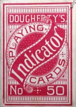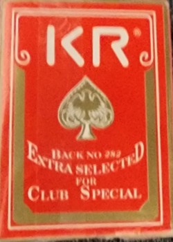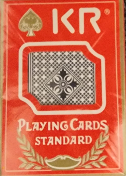 Red colored poker size playing cards with the letter “A” on top of the deck. Image below has an icon that has a Diamond within a Club within a Heart within a Spade suit surrounded by flowers.