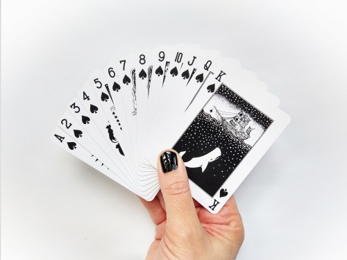 This deck features 54 unique illustrations all based on and inspired by fairy tales, fables and iconic stories. From Cinderella to Moby Dick, from Peter Pan to the Jungle Book, from The Red Shoes to Aladdin.