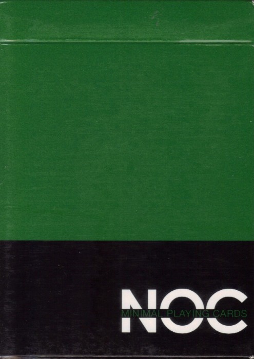The V1 are regular decks with a thick black bottom border and the words "minimal playing cards" located in the NOC are written in the colour of the deck. They come in red, yellow, green, blue, and purple.
