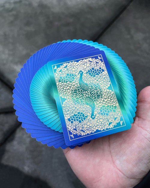 For the first time ever Bicycle is printing with a new technology – Cold Foil! This historic deck design has been re-imagined with this new technology to be featured with Cool blues and greens with fantastic gold highlights. You will be dazzled by the gorgeous details in the fabulous new deck! The back as well as faces feature gleaming foil accents including colorful foil court cards and gorgeous gold pips.