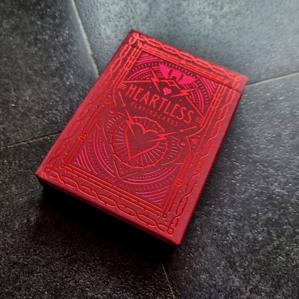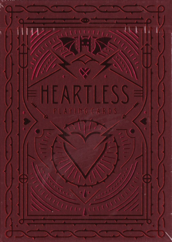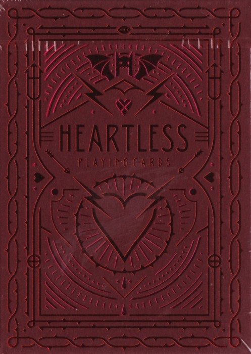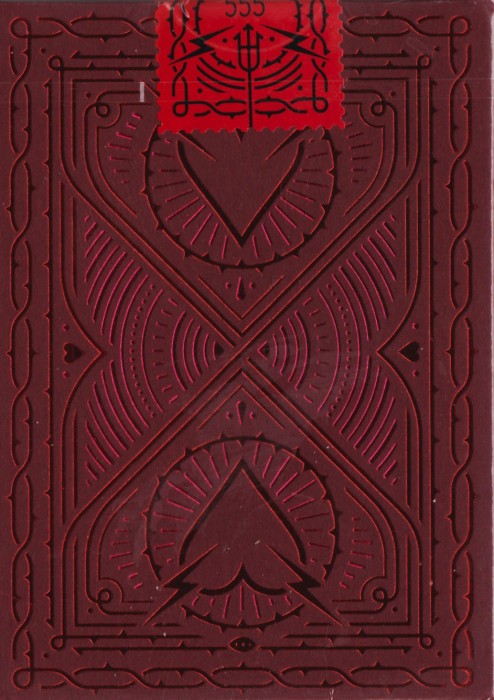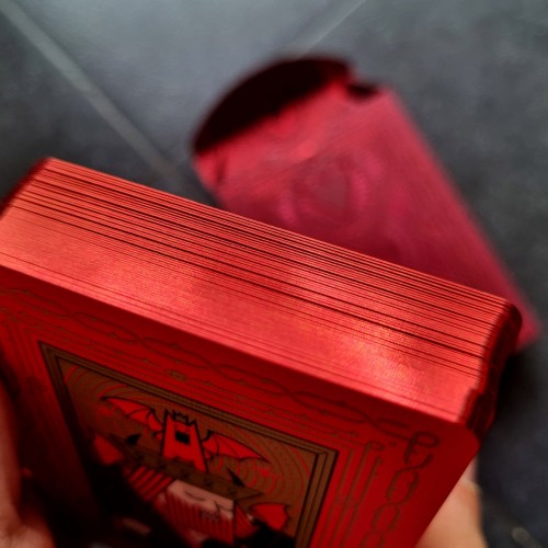 An experimental version of Heartless Nether, with a different box, back and gilding. This version uses 2 different layers of red foil (orange-ish and purple-ish), on premium matte red paper.