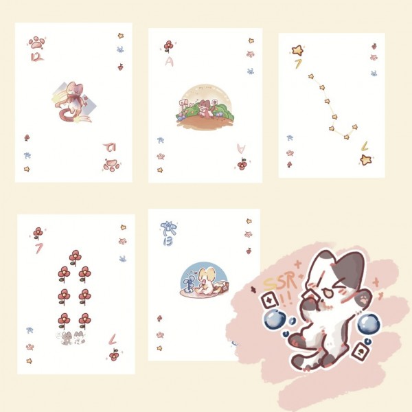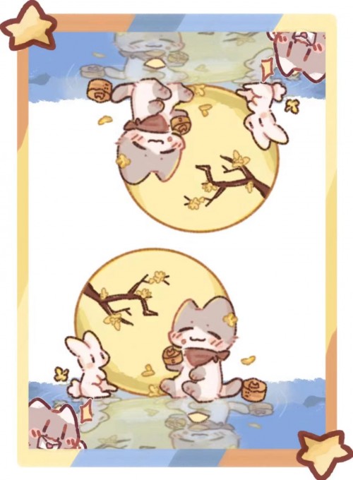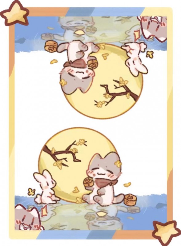 2. Cat V2 Collector's Moon Cake Festival (Blue), Dream Seeking Playing Cards, mirrored back with cat, rabbit and full moon