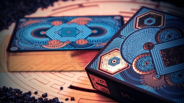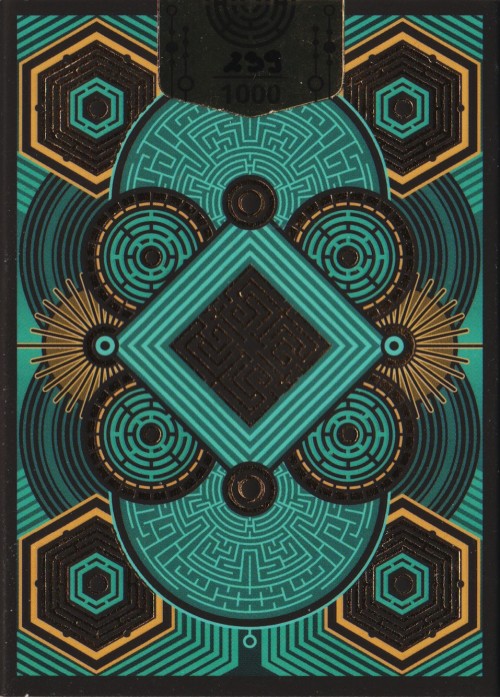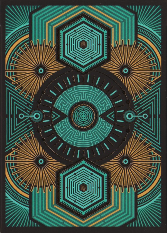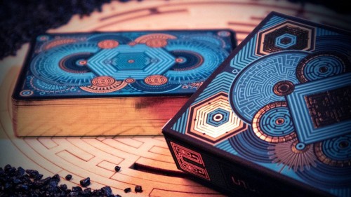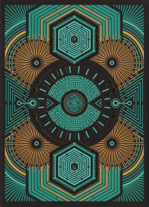 Fascinating colors, rarely found in nature. Turquoise symbolizing immortality and eternity, and the amethyst color that helps to keep a sober mind and control raging senses. Both are broken with royal gold and dark black, giving the decks a disturbingly fascinating character. What does it mean? The colors of the ocean depths, or maybe the depths of madness?