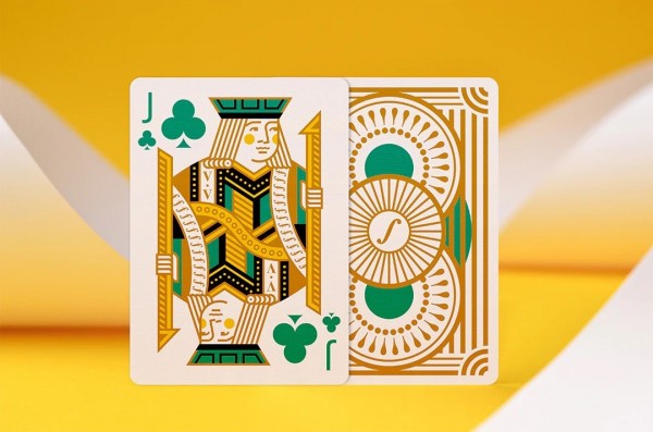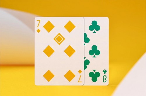 In particular, it is an English four-colour pack with red hearts, green clubs, amber diamonds and black spades enhanced by blue accents. Improvements include bigger pips on the numerical cards, larger illustrations on the court cards, a more clean-cut design for the ace of spades, the so-called 7bello, and more.