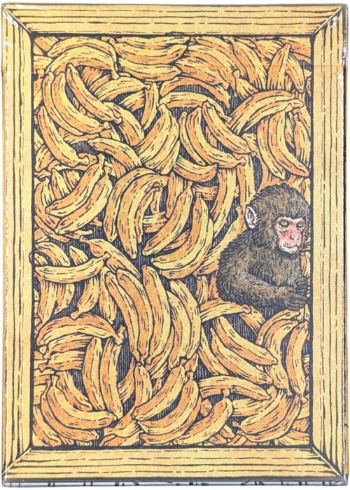 Monkey - A macaque monkey sitting among a pile of bananas.