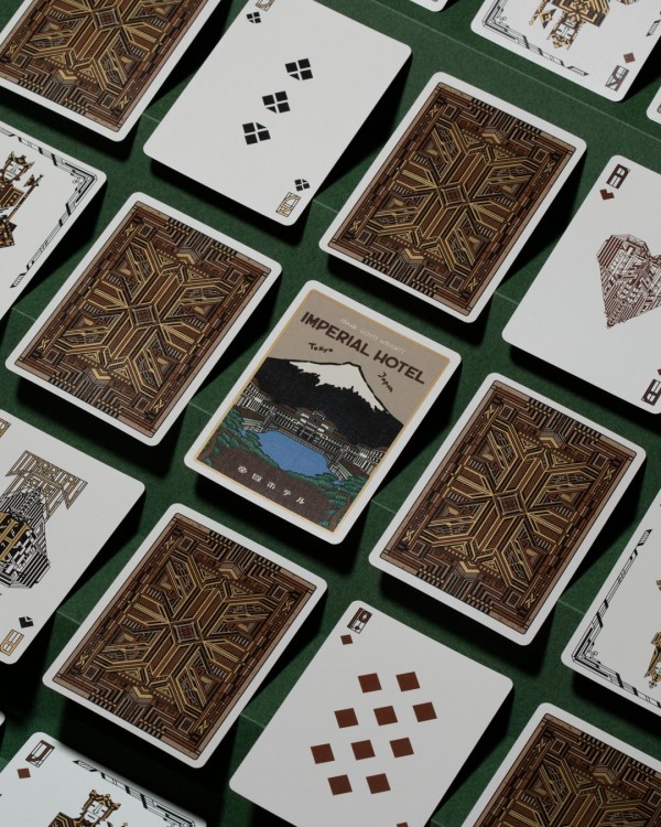 In celebration of the centennial anniversary of the Imperial Hotel, the Frank Lloyd Wright Foundation has partnered with Art of Play to design a commemorative pack of playing cards based on Wright's original drawings. Meticulously Illustrated by Ethan Kowaleski in close collaboration with Brad Fulton and Dan & Dave Buck.