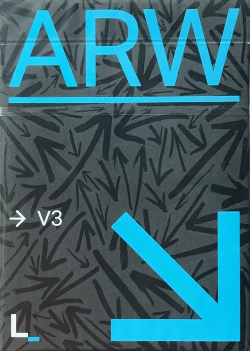 ARW V1 explored direction and signage in a minimal and contemporary fashion. V2 took that theme and moved from street signs to street art inspiration, with graphic typography. ARW V3 now takes street art and looks at it more in a hand drawn form - a complex combination of arrows sketched to form a dark base and foundation for the card back.