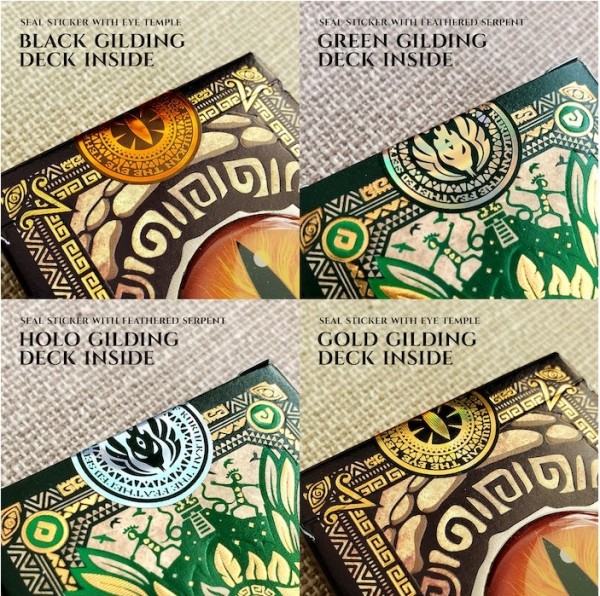 Although the decks are the same, they are offered in two different gilding: Jungle Green or Starry Holo (Tuck seals are different depending on type of gilding)