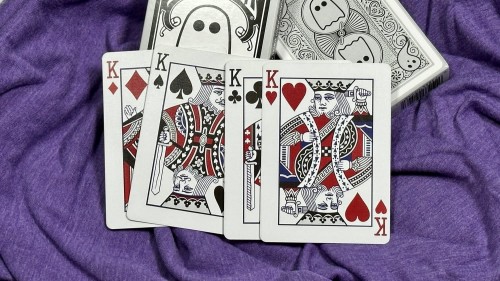 The deck has standard Bike faces that have been recolored to match the ghost vibe. Identical jokers because that's more useful than different jokers. A custom Ace of Spades because those are the rules. Also a double backer and a blank facer because extra magic built into the deck is rad. The box is a normal card box and has a custom sticker. Maybe someday we'll print some other colors (we probably will, I really liked having multiple colors of Insignias) but I don't have any plans to print more batches of these grey ones. When they sell out, they'll probably be sold out for a long time. Maybe forever.