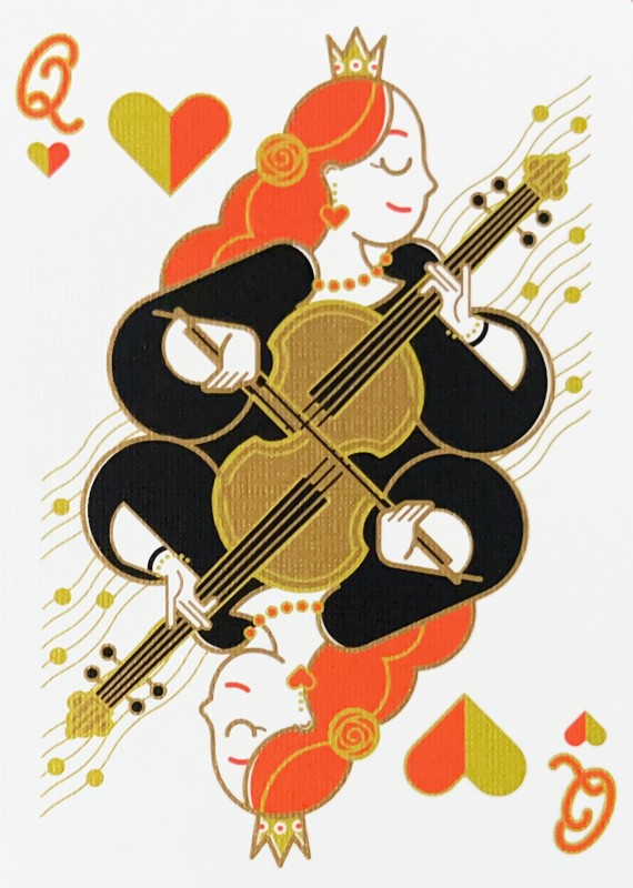 When you shuffle them, you'll be greatly satisfied with the musical sounds these cards can make. The combination of these sounds and the graceful artwork on the court cards, each representing different instruments found in an actual orchestra, will make you feel as though you were actually an audience to an orchestra.
