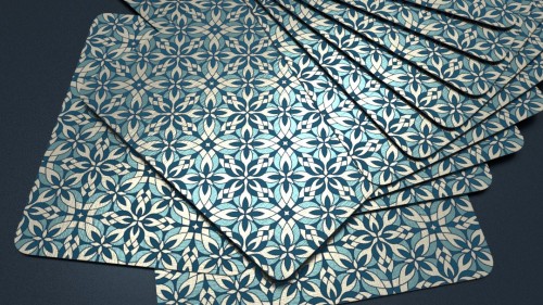 The Teal Limited incorporates smoother linework with a concept of Oriental tiles and stained glass. The color teal signifies water droplets creating ripples through the smooth surface of a pond, with the silver being the shimmer of ripples conjoining. With enough imagination, one could see the back design of the Teal edition as a scene from an afternoon sprinkle on a small pond in the middle of a forest. The foil only makes this daydream easier.