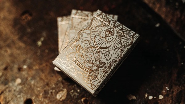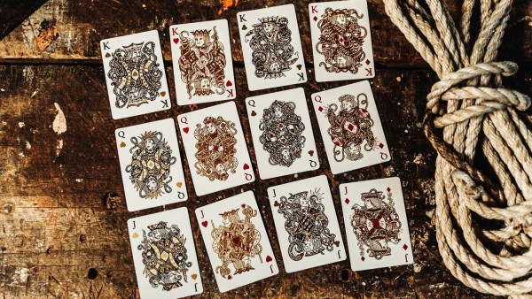 The court cards are all completely custom, with distinct characteristics. Each suit tells its own story, with each jack, queen and king symbolically linked.