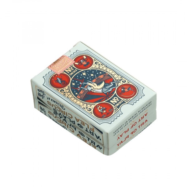 Art of Play's Flea Circus miniature playing cards feature whimsical illustrations celebrating the most astounding acts of a legendary "flea" circus. From death-defying stunts to hilarious antics neither ant nor tic would dare, you'll be scratching your head about how they did it.