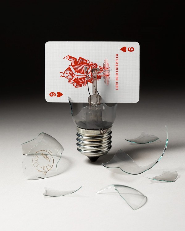 Flea Circus playing cards were illustrated by Jeff Trish and feature 54 unique acts, one for each card in the deck. The cards themselves are packaged in a luxurious box featuring rich accents of gold foil and embossing.