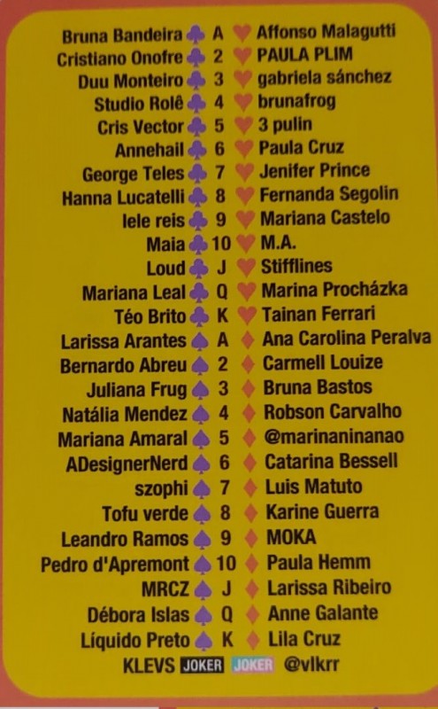 Deck created by El Cabriton and Copag. 54 different artists creates 54 different cards.