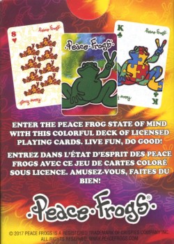 All anyone really wants is Peace and Love. This deck will invoke the memories of long hair and feet bare, sauntering through the days collecting flowers and sharing them freely with others. Stack your best albums on the turntable, burn some incense, and invite your family and friends over to play cards games with this colorful, daisy-laden, Bicycle Peace & Love deck. Mellow out, man.