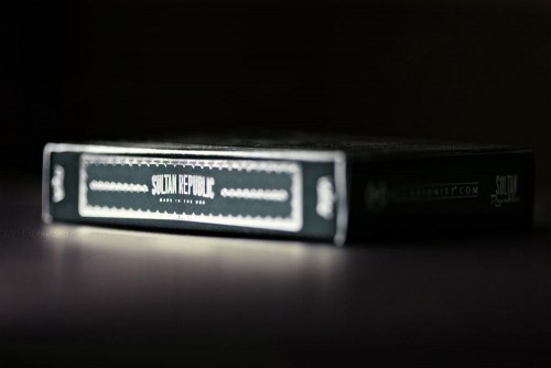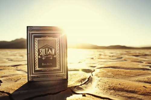 The Sultan. Once the most powerful man in the known world. A Commander. A Ruler. A God King. It was at the Sultan\'s behest that the Republic rose. Altruistic and philanthropic, the Sultan now shares his wealth with his people. We searched out to capture the majesty of the Sultan, of the treasures he amassed, and the stories of a simpler time. Over 8 months in the making, lead designer Mike Clarke spent countless hours finessing the design of everything from the curlicues on the box flap to the muted red lines of the herringboned hearts, delivering the perfect balance of form and function throughout. Printed on the finest stock the US Playing Card company has to offer, the pulp fibres have been specially compressed to offer the utmost in durability whilst achieving a thinner card with a pleasing snap. Layered with Ellusionist\'s own Performance Coating finish, the Sultan Republic is quite possibly the best deck we have ever made. But don\'t take our word for it - try them out for yourself.