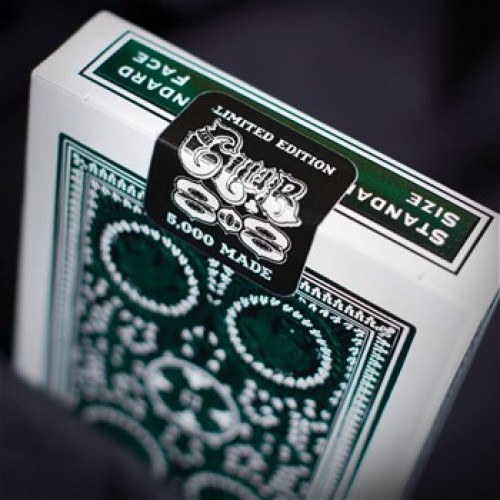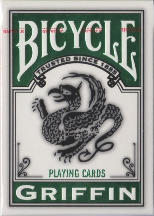 The Griffin Deck features green foil printing on the tuck with embossing on the front panel for the text and Griffin image. The back design was unearthed from the USPC archives and was originally used on No. 500 Playing Cards. This is a Limited Edition deck that is available exclusively to Club 808 Members. The seal on the top of the tuck is a Club 808 seal showing the production quantity of 5,000 decks. Maximum of 24 decks per member.