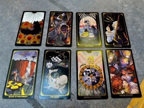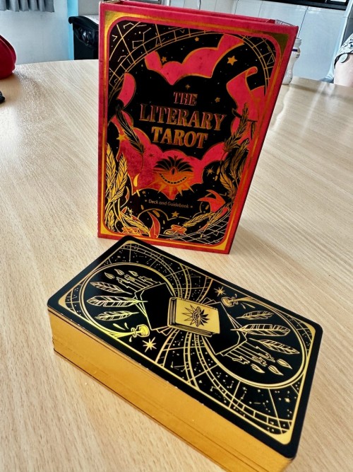 "Pairing each tarot card with literary characters who embody the meaning of the arcana, we brought this library of secrets to life. The deck will feature the complete set of all 78 tarot cards, illustrated with a stunning, limited palette and gold-foil accents."