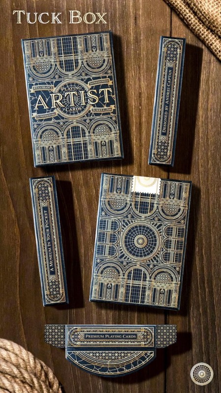 With a back design inspired by museum architecture and a gold foiled and embossed tuck box, this deck is perfect for everyone, from the interested artist to the experienced cardist.
