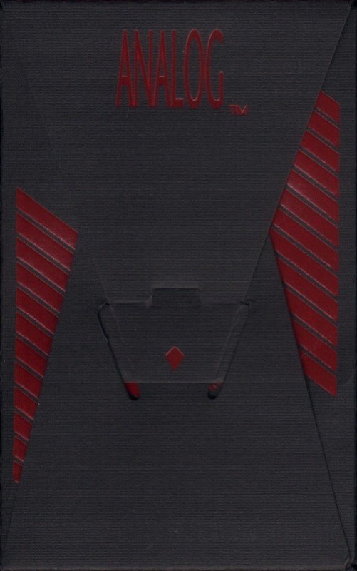 Designed by Ruth Kedar, the designer of the original Google logo, The Analog deck was issued as a limited edition (1000 reds and blacks). The packaging was designed with a special lock detail and each box has embossed foil detail (queen of diamonds) in either black or red. Each card is designed so that when the cards are \\\\\\\"in play\\\\\\\"" by either fanning or stacking them