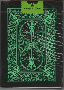 The Iconic Bicycle® Rider Back with Fully Customized Courts, Jokers, Aces and more! Vibrant Colors that GLOW under UVBlacklight! From Card-Addiction.com.
