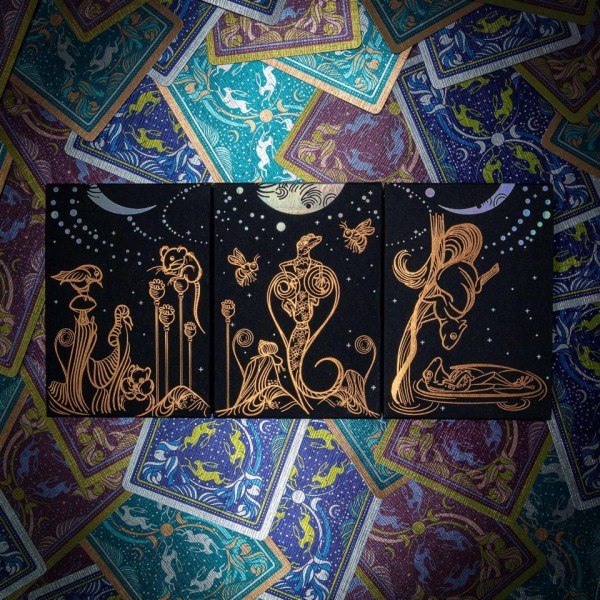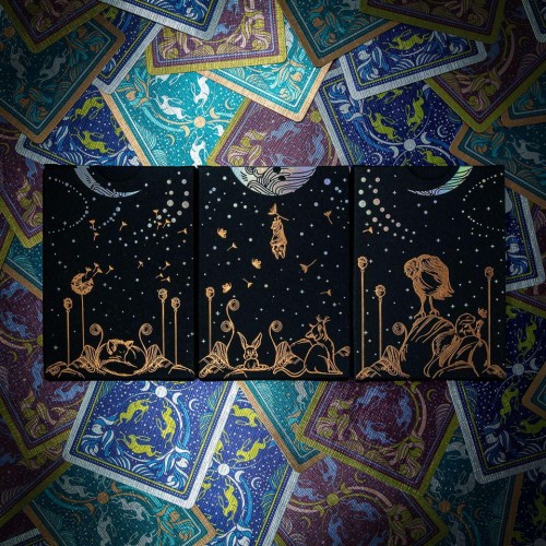 Members of the Jocu Inner Circle were able to purchase this variant of the triptych set. The tuck boxes are black with copper and holo foil.
