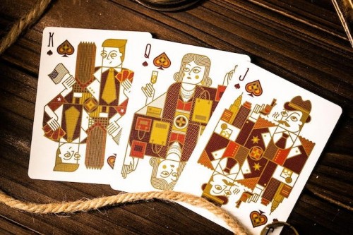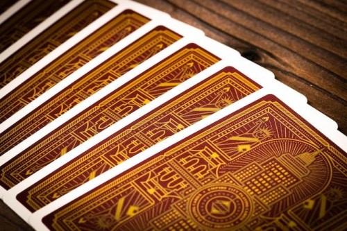 The tuck case of Empire City Playing Cards fully embodies the spirit of the city that never sleeps. At first glance, the New York City skyline is prominently featured, including iconic buildings like the Empire State, Chrysler, and the Statue of Liberty holding her torch at the corner. Each court card features a typical New Yorker going about their daily business.
