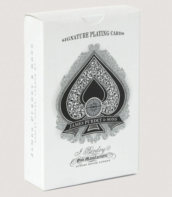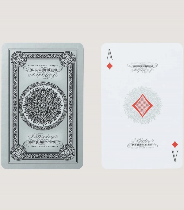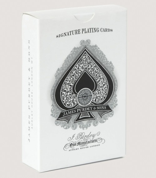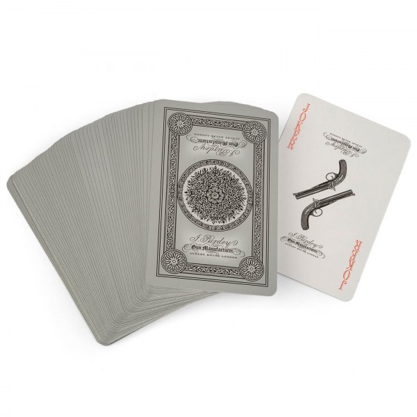 A smart card player always carries his, or her, own cards. This pack features hand drawn Purdey engravings. The royal cards are jacks, queens and kings holding pieces from the Purdey archive and each royal has its own pattern. The cards are bridge size and made from heavyweight board with a silk laminate finish. - Introducing the Purdey Engraving Playing Cards in Silver, a testament to exquisite craftsmanship and timeless allure. Immerse yourself in the world of refined gaming with these meticulously designed playing cards. The sleek silver finish adds a touch of sophistication, capturing attention with its understated elegance. Each card is adorned with intricate engravings, showcasing the meticulous attention to detail. Whether enjoyed at exclusive gatherings or in the comfort of your home, these playing cards elevate the gaming experience to new heights. Discover a world of luxury and sophistication with the Purdey Engraving Playing Cards in Silver, where style meets impeccable artistry.