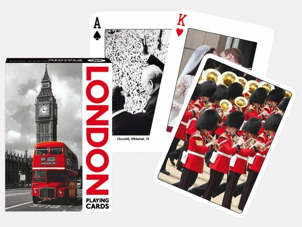 ‘He who is tired of London is tired of life' - as these 54 classic images of London proclaim. Wren's great dome of St. Paul's, Westminster Abbey, Buckingham Palace, theatre, pageantry and parks- and the iconic red bus- make London the most popular capital in the world. 'Dull would he be of soul' who could pass it by... Size: 63 x 88mm. Playing side of each card features a different image of London.