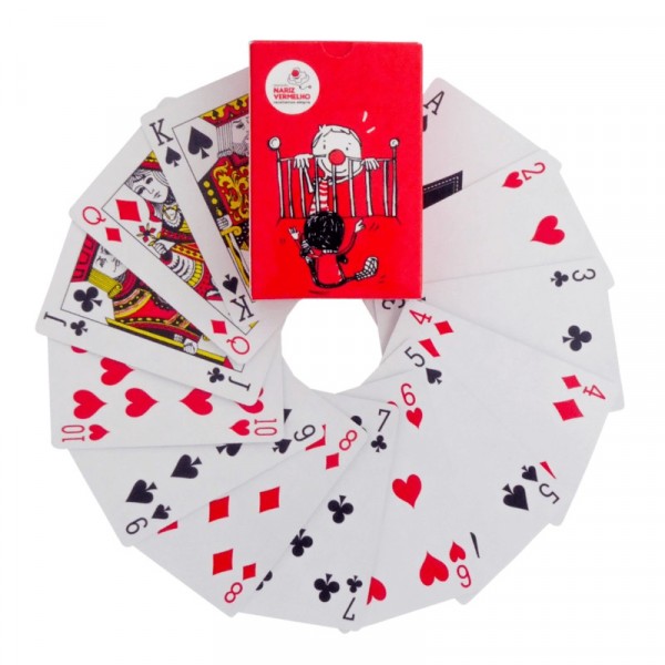 Baralho de cartas da Operação Nariz Vermelho. Apoie a causa da Operação Nariz Vermelho ao comprar o baralho de cartas da organização. O valor dos baralhos, 2€, reverte na sua totalidade para a Operação Nariz Vermelho. Todos podemos ajudar, ajude também.