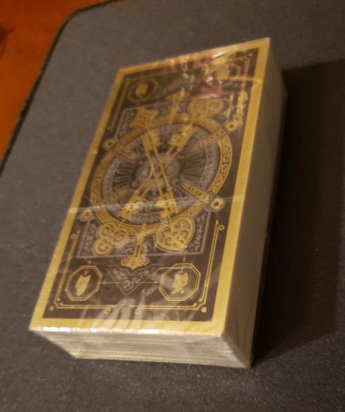 The complete set of 78 cards with golden foil on both sides (22 Major Arcana and 56 minor arcana) refill cards come in cellaphane with EU stamp and instruction booklet. No tuck.