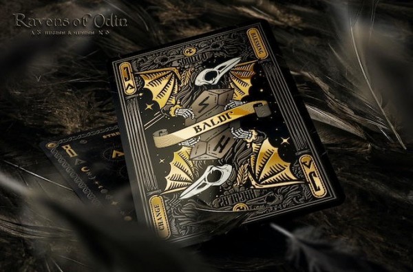 - 55 playing cards in premium 330gsm black-core card stock illustrate the 'Dark Valhalla'