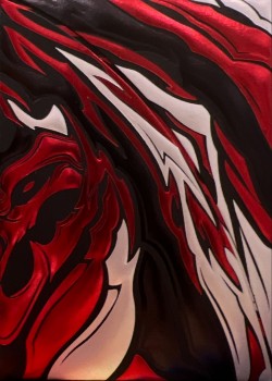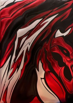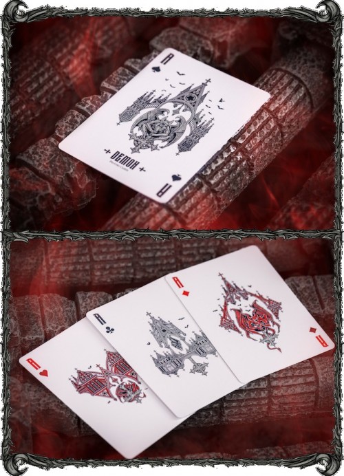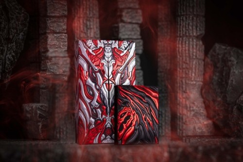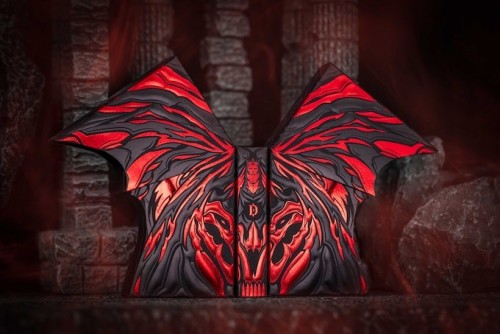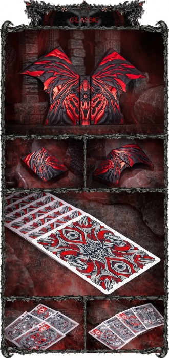 The Vengeance Edition, a striking contrast to the Gigantic Edition with its more restrained yet familiar appearance. However, don't be deceived by its subtle look, for the Vengeance Edition holds a captivating secret. With a simple lift of the batwing, you gain exclusive access to its hidden treasures. The back design features organic border of the grotestque demon showing its teeth. The courts are two-way illustration.