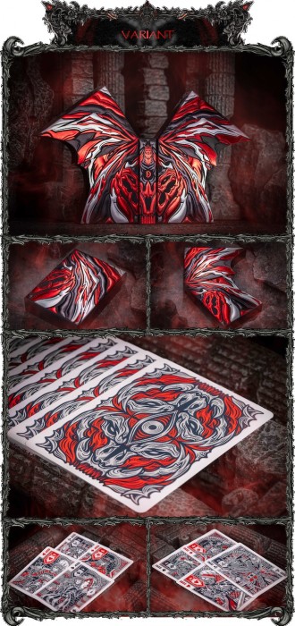 The Vengeance Edition, a striking contrast to the Gigantic Edition with its more restrained yet familiar appearance. However, don't be deceived by its subtle look, for the Vengeance Edition holds a captivating secret. With a simple lift of the batwing, you gain exclusive access to its hidden treasures. Due to the success of the V1, Vengeance comes with an extra edition - Variant. The box features an extra hot foil, different card back design, and the one-way full lenght courts.