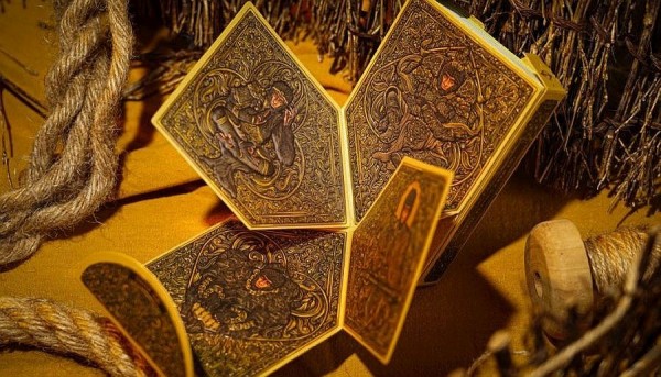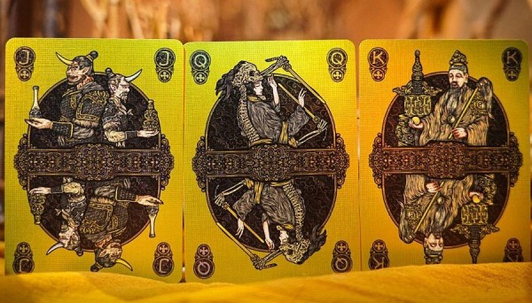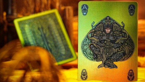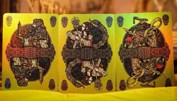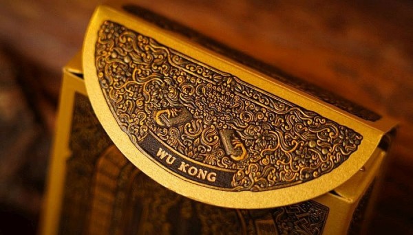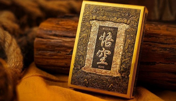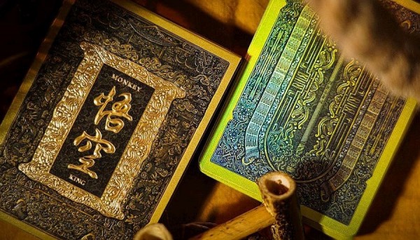 Monkey King is a central character originating from the 16th-century Chinese novel "Journey to the West" (西游记), and he remains one of the most beloved and influential mythological figures in China. In this novel, Sun Wukong, born from a stone, attains supernatural powers through Taoist practices. However, after a rebellion against the heavenly realms, he is imprisoned beneath a mountain by the Buddha. Five hundred years later, he embarks on a transformative journey with the monk Tang Sanzang (唐三藏), riding on the White Dragon Horse alongside two other disciples, Zhu Bajie and Sha Wujing. Their mission: to retrieve Buddhist sutras from the West, the realm of Buddha and his disciples in India. where Buddha and his followers dwell. This is the main edition - MONKEY KING Playing Cards. It features Pop-Up tuck box that can flap open to form a cross-shape canvas and gold holographic full foiled cards. The Aces feature the Monkey King in four different Taoist poses. Courts represent the characters in the novel.