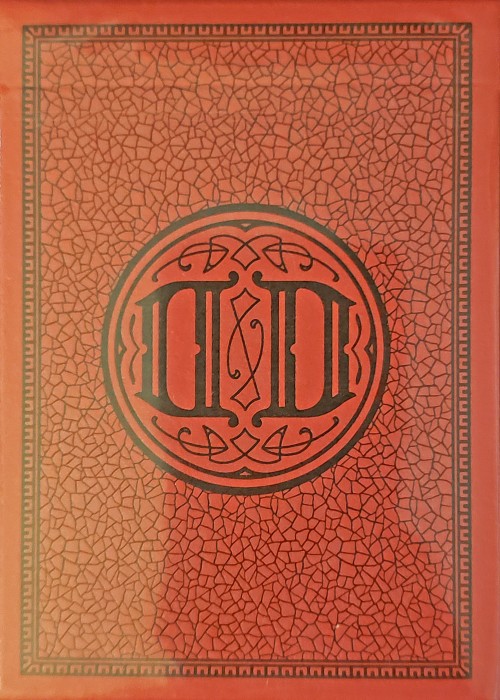 The cards feature our trademark D&D monogram in a new typeset surrounded by a mosaic pattern on the backs, along with a custom ace of spades, joker, and suits for the number cards. Printed by the U.S. Playing Cards Co. on our trademark thin stock using classic Arrco-style court cards.