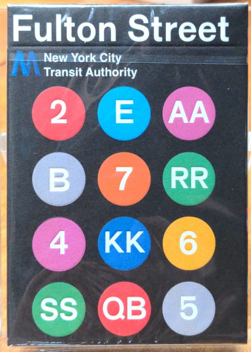 These special edition playing cards celebrate the 50th Anniversary of Massimo Vignelli’s iconic design for the MTA Subway Map of 1972. No expense was spared in creating these classic playing cards that feature completely custom back and face card designs that celebrate the now legendary signage of the most frequented transit system in the USA. Produced in collaboration with the MTA, Fulton Street is a love letter to the amazing graphic design of the New York Metropolitan Transportation Authority. By “cropping into” the curves so eloquently designed by Vignelli, these cards provide a back design that encapsulates the kinetic energy of transit in The Big Apple. Completely Custom Design including court cards & pips Additional Card features an essay by Dr. Kenneth Joh on the significance of the Vignelli Diagram. Printed by the US Playing Card Company on premium card stock. Tuck Box letterpress embossed in San Diego, CA.