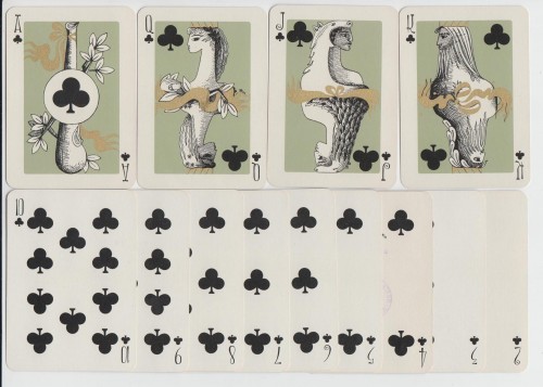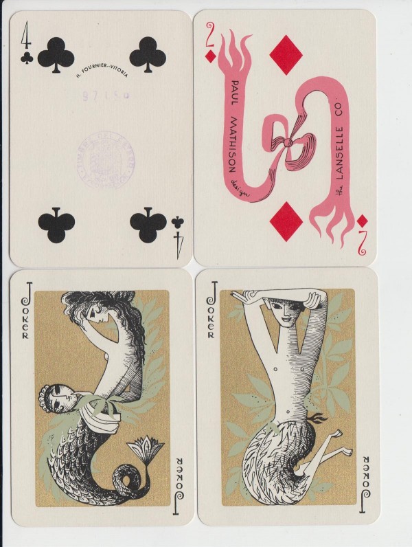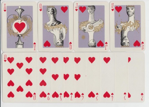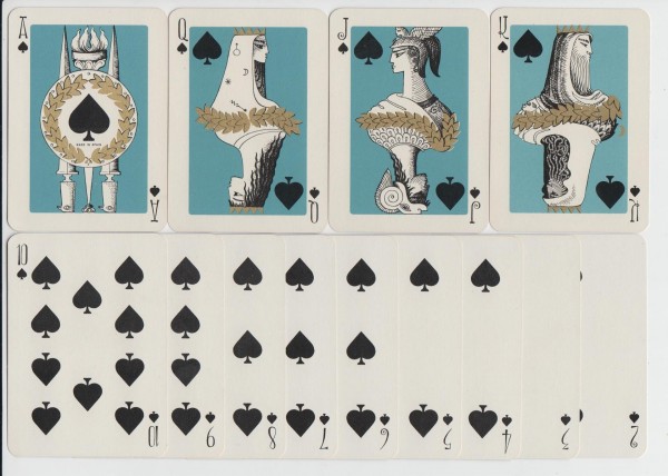 The CLASSIC pattern, designed c. 1959 by Paul Mathison for the Lanselle Co., show artworks inspired by classical mythology. The court cards are double ended with different designs on each end. The cards were published as single decks in a small box and also as a double deck in a blue box with a explanatory leaflet.