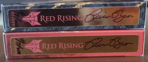 The signature gilded edition deck is one of two decks included in the two deck box set. Both decks are hand numbered x/200 and signed by Pierce Brown, the author of Red Rising.
