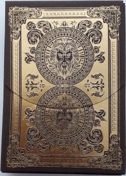 The tuck box completes the overall aesthetics of the deck and come in a carefully chosen choice of two significant and representative colors of China, porcelain blue and vermilion red. Embossing and gold foil stamping is used to symbolize wealth and royalty.