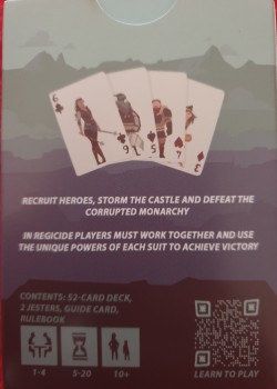 Be warned: this game is challenging! During the testing and balancing stage we played many hundreds of games both between ourselves and with other unwitting volunteers. Through this testing we found the game was no cakewalk. But do not fear, the game is fast to setup, fast to play, and you'll learn valuable lessons from each crushing defeat. Defeated? Just shuffle up and try again! When you finally take out that fourth King high fives with your regicidal comrades is guaranteed.