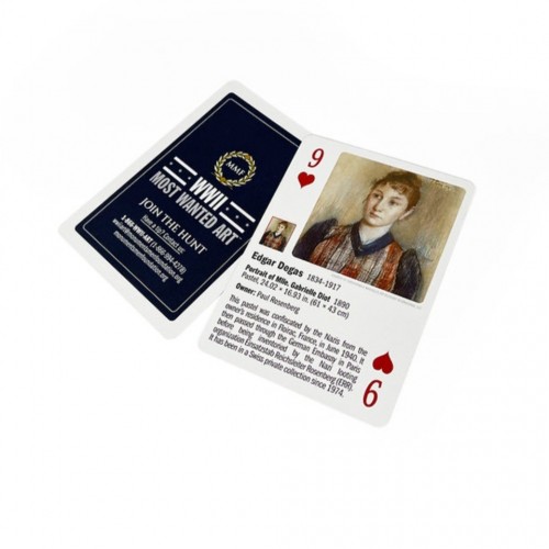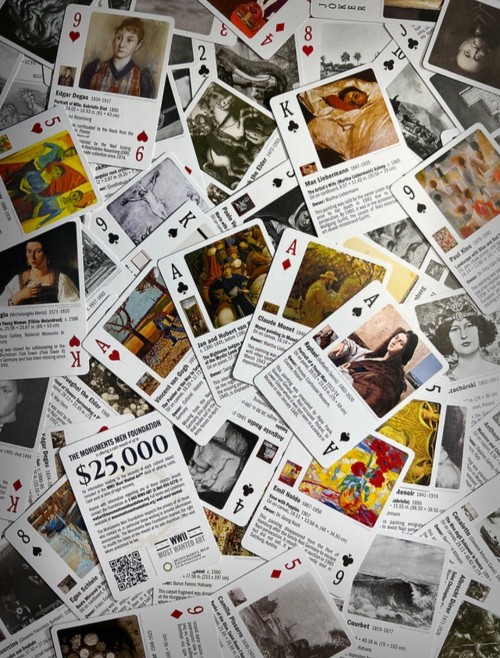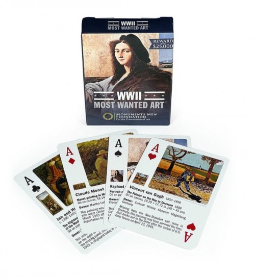 The deck includes fifty-two works of art and two sets of historical photo albums featuring works confiscated and coveted by the Nazis and Adolf Hitler. Artistic cultural objects spanning the tenth through the twentieth centuries, and major European artists from various periods are represented in the deck. The Foundation worked with the owners of these objects as well as museums and law enforcement agencies to complete research into the circumstances of each loss.