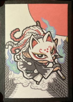 The Japanese Yokai playing card deck contains a total of 54 cards and they are the same size as the cards in a standard playing card deck. All of the images on the cards in this deck are original works of art depicting different yokai.