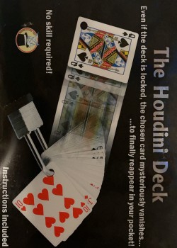 Harry Houdini began his career in 1891 doing card tricks in side shows. He billed himself "The King of Cards" and, although he died almost 100 years ago, he is still one of the greatest names in magic history. Most known for escaping straight jackets, chains, and padlocks while totally submerged in water, Harry always generated large scale public fascination. Comes with 6 gaffs & 2 reveals!