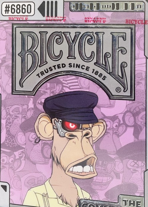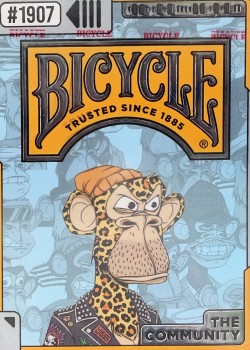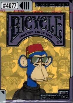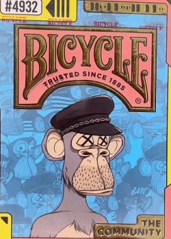 HODL your piece of Crypto history with Bicycle Bored Ape Playing Cards. Bored Ape #1227 is embossed on the tuck against a purple holographic background. With court cards featuring armor-clad apes and hidden bananas among the pips, you can bring the Yacht Club to your next game night.