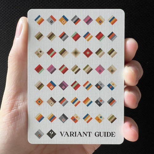 Mystery Deck by LiH, each deck has it's own pattern and colors. All the faces and backs will be all identical. Every deck will have a guide on the different variants, the metadata of the p5js generative art for the decks, and a 20 color swatches graphic card.