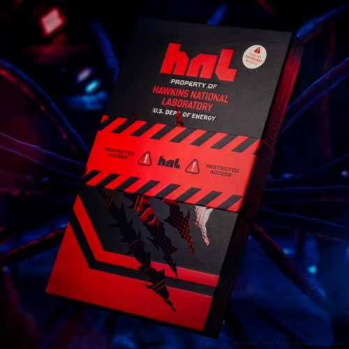 The Collector's Box Set of Stranger Things is designed to looked like a VHS tape taken from Hawkins National Laborotory. The box set contains two Standard Edition decks and one Limited Edition deck