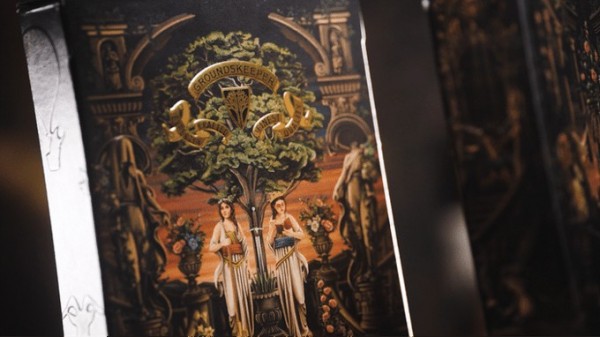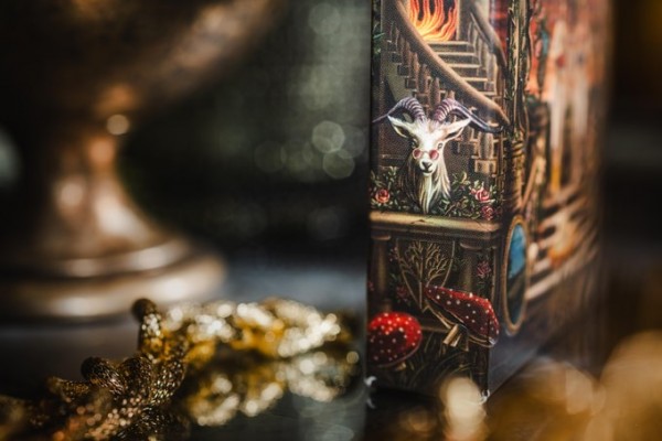 Each sleeve is hand pressed, creating a stunningly detailed, richly textured effect. Embossed and foiled in gold, the deck is a pleasure to view and handle before one even opens the box.