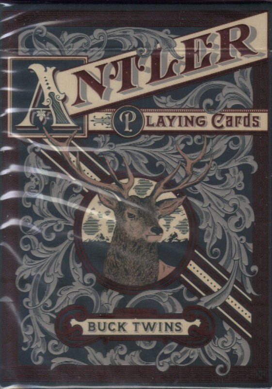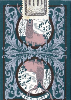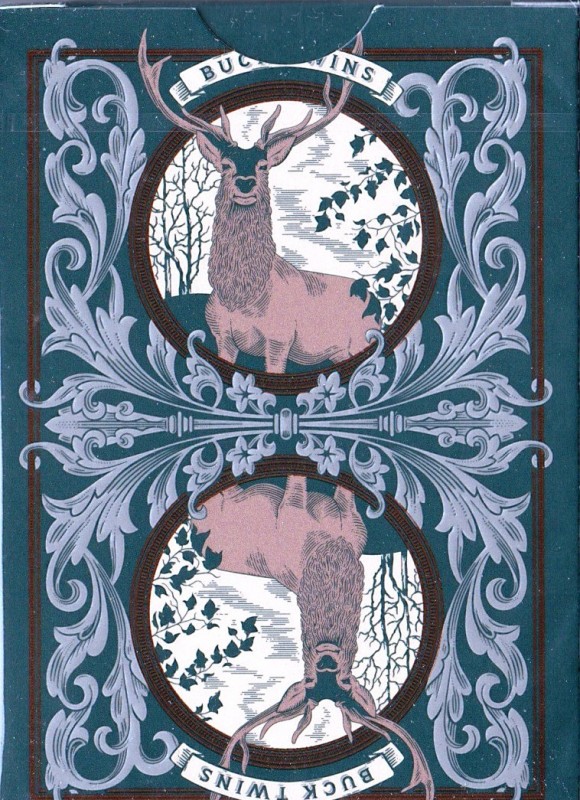 This Standard Edition features two monochromatic back-designs: Hunter Green and Deep Maroon. Twin Bucks (Dan & Dave Buck, get it?) are enshrined within beautiful flourishes that mimic the lush greenery found within Yosemite National Park. The Ace of Spades features a noble Buck with herbaceous ornamentation crowning his dignified antlers, and each Joker offers the Antler name. The tuck-case features rich embossing and metallic accents all around.